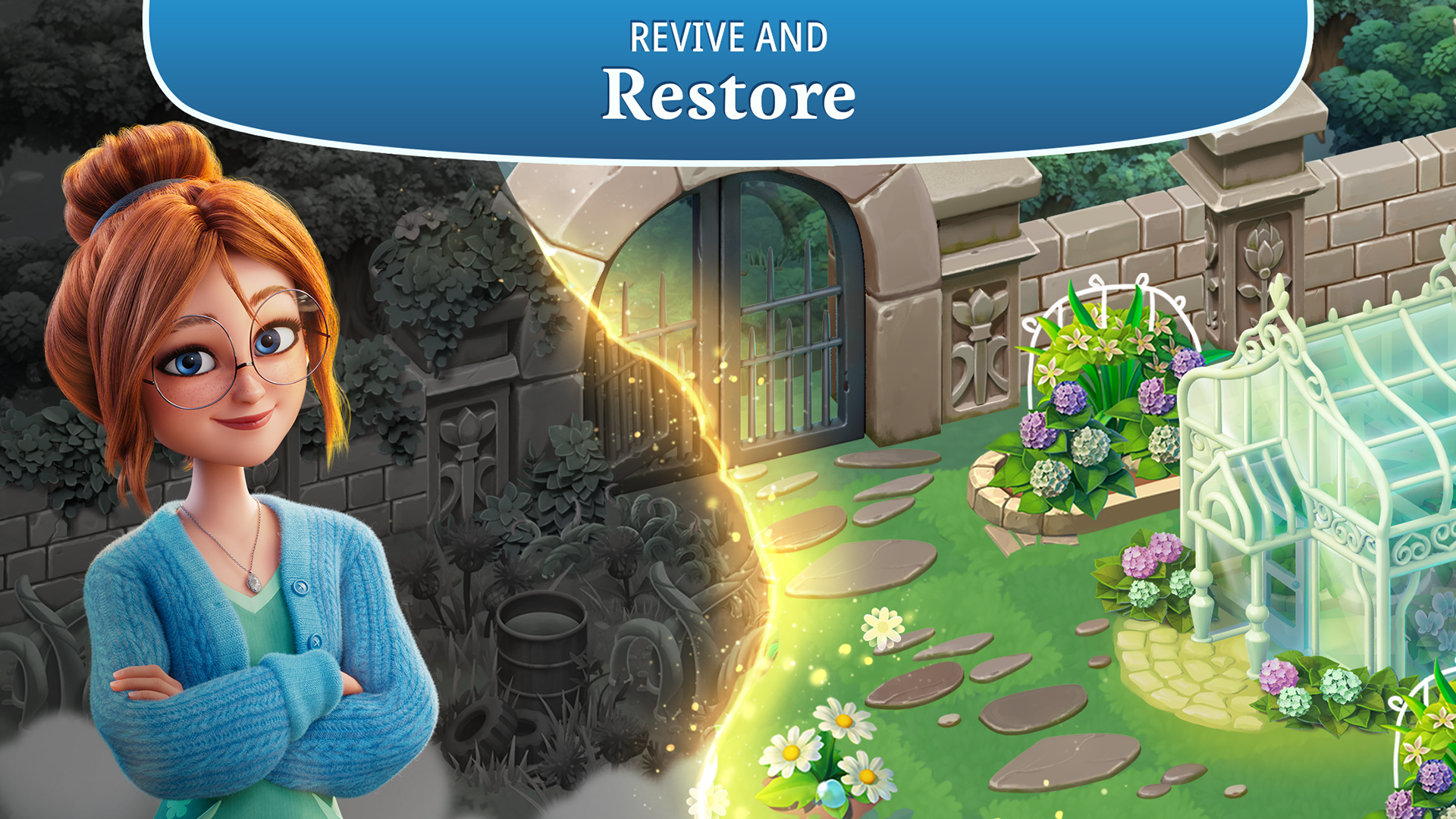 Relájate y canaliza tu creatividad restaurando los jardines de la mansión. Desarrolla tu afición por la jardinería y tu parcela, quitando Siemprecrece y revelando nuevas áreas. Saca a la luz secretos y colecciona criaturas raras para que vivan en tu jardín.