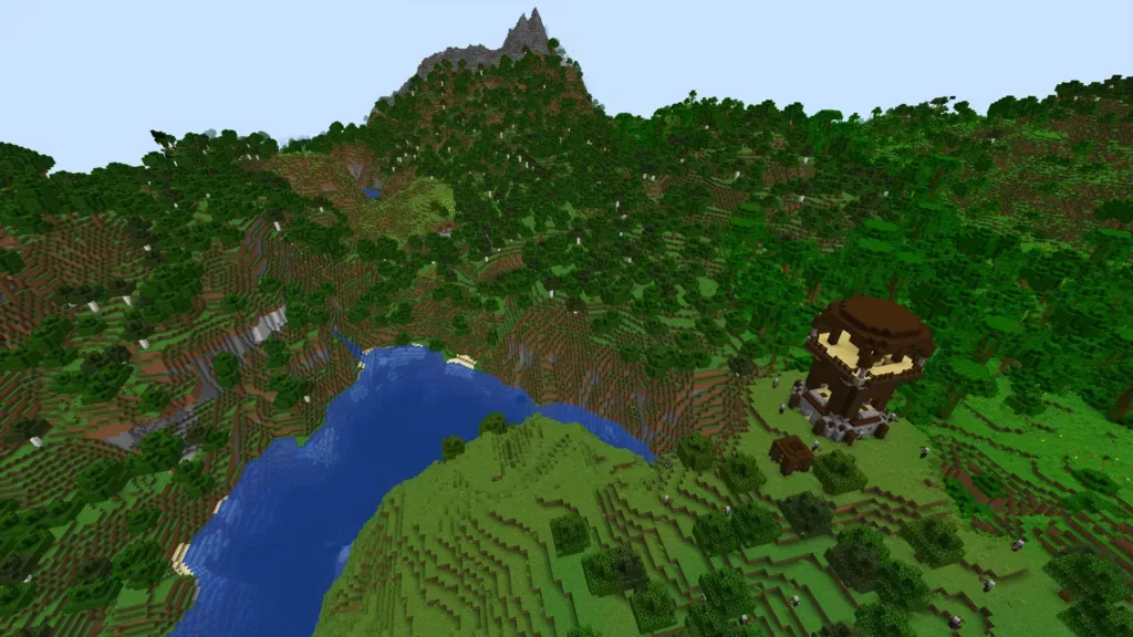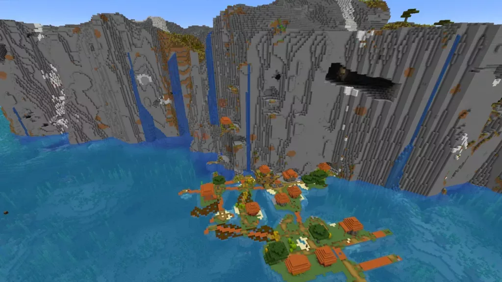 절벽 옆에 자신만의 버전을 건설하여 이 마을을 확장하거나 마인크래프트의 거대한 바이옴을 내려다보는 절벽 꼭대기에 무언가를 건설할 수 있습니다.