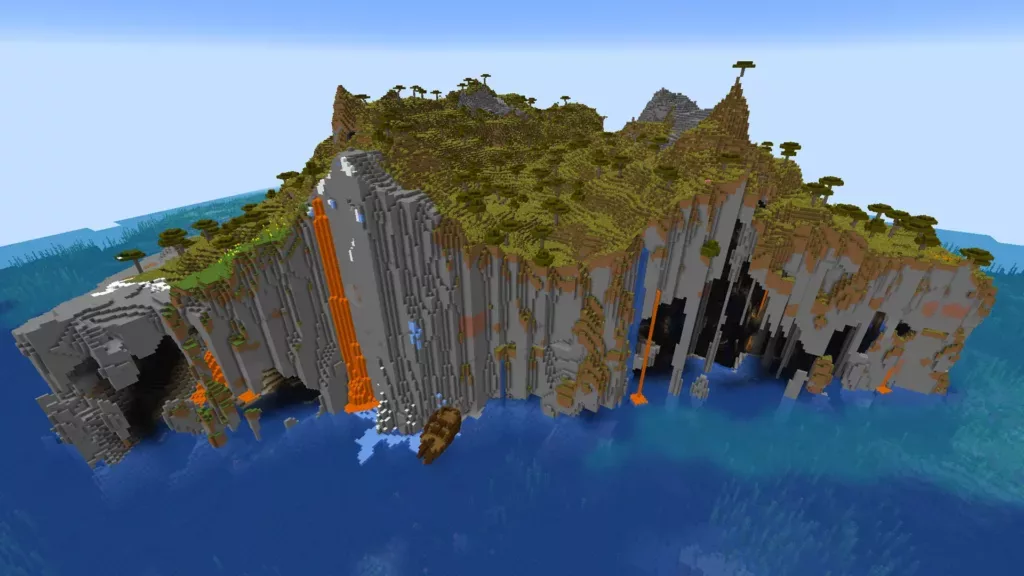 동굴 벽 가까이에 집을 짓고, 자연의 경이로움과 바이옴을 통합하고, 위의 채광창을 볼 수 있는 가시성을 제공하는 마크 좋은 시드 중 하나입니다. 자연과 조화를 이루는 구조물을 건설하는 데 관심이 있다면 이 시드가 훌륭한 캔버스가 될 수 있습니다.