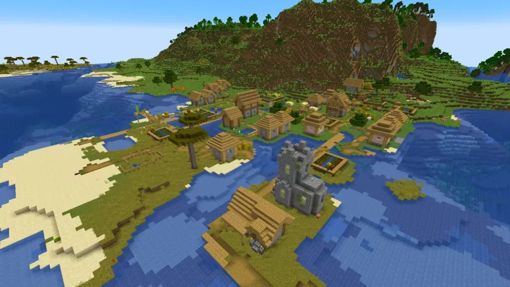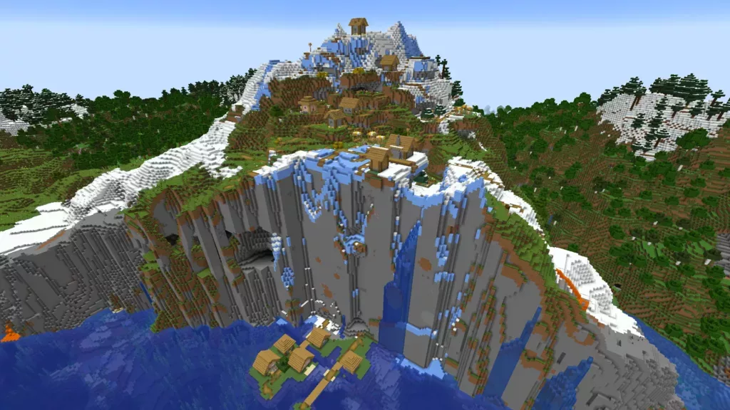 이 시드는 독특한 매력을 가지고 있습니다 — 여러 다른 유형의 위치로 둘러싸인 절벽 가장자리에 위치한 마을로 안내합니다. 그 위치는 몇 가지 방법으로 도전할 수 있습니다.
