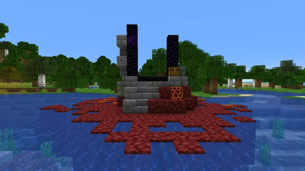 근처의 수역을 활용하고 그 주변의 자원을 기반으로 경험을 만들 수 있습니다. 근처의 네더 포탈 덕분에 엔드게임을 탐험하거나 단순히 농장을 짓거나 기지를 짓거나 생각할 수 있는 모든 것을 지을 수도 있습니다!