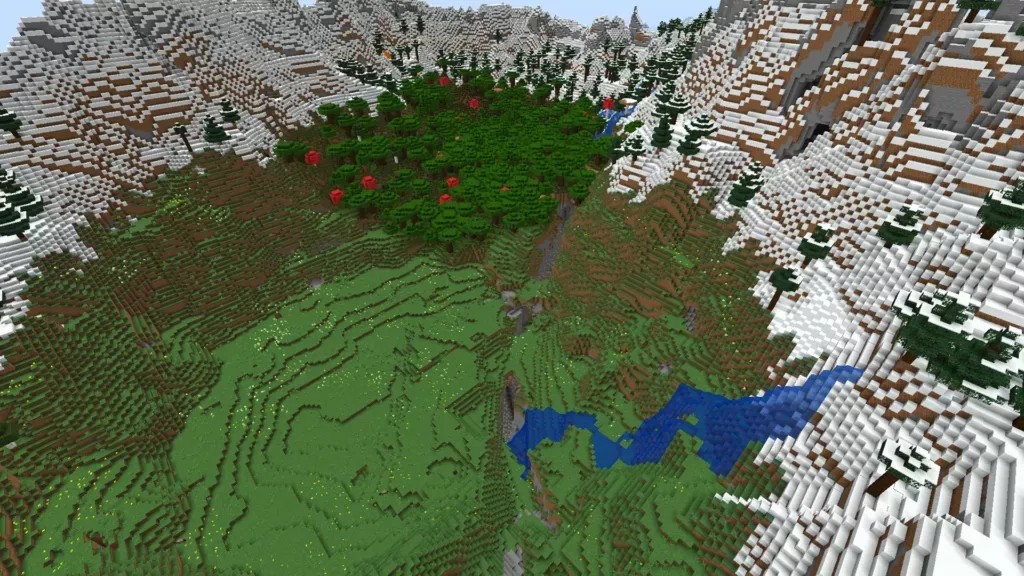 꽃으로 가득 찬 거대한 자작나무 숲과 넓은 바이옴에서의 편안한 경험을 혼합한 이 시드는 모든 틈새의 마인크래프트 플레이어에게 아름다움과 기능을 모두 제공합니다. 건축가이든 생존주의자이든 이것이 유리할 것입니다.