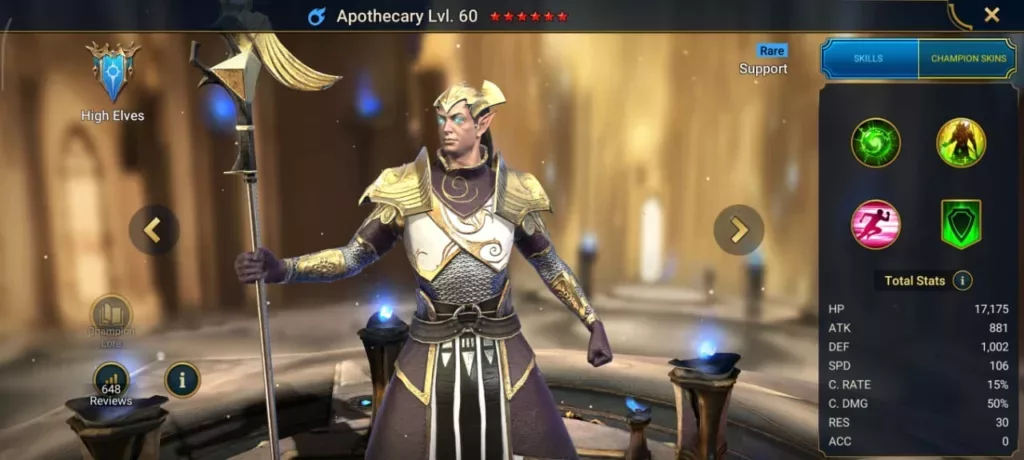 | 챔피언: | 아포테카리 (레어 / 하이 엘프 / 마법) |