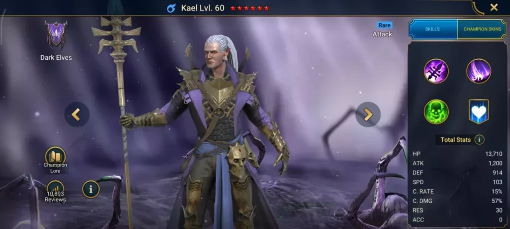 엘헤인은 A2로 강력한 광역 피해를 제공하고 초반 게임 팀에서 아레나 누커로 기능할 수 있습니다. 그녀의 A3는 단일 대상을 여러 번 타격하여 파이어 나이트의 실드에 대항하는 데 도움이 되며 팀의 턴 미터를 생성합니다. 그녀는 견고한 챔피언이지만 케일은 일반적으로 독 능력으로 인해 더 많은 유틸리티를 제공합니다. 스타터로 선택하지 않았고 미적으로 선호하거나, 초기 아레나 클리브 팀을 구축하고 있으며 다른 소스에서 클랜 보스를 위한 독 커버리지가 이미 있는 경우 엘헤인을 선택하세요.