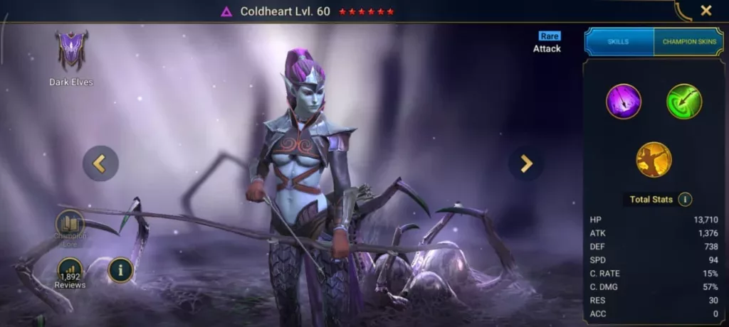 레어라는 등급에 현혹되지 마세요. 콜드하트는 적의 최대 체력을 기반으로 피해를 주는 하트시커 능력 덕분에 던전 보스 전투에서 대부분의 전설 챔피언을 능가합니다. 이 능력이 워낙 강력해서 게임의 거의 모든 다른 챔피언보다 던전 보스에게 더 강한 타격을 가하며, 보이드 속성으로 속성 불이익이 없기 때문에 엔드게임에서도 스파이더, 아이스 골렘, 파이어 나이트 팀의 영구적인 구성원이 됩니다. 그녀는 레이드 그림자의 전설 신규 프로모션 코드 중 최고의 선택 중 하나입니다.