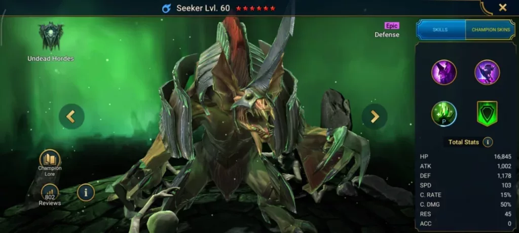 | 챔피언: | 시커 (에픽 / 언데드 호드 / 마법) |