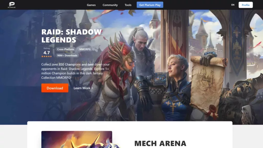 다양한 무료 온라인 게임을 간편하게 즐길 수 있는 사이트를 찾고 있다면 플라리움(Plarium)을 추천합니다. 플라리움은 크로스 플랫폼을 지원하여 컴퓨터나 스마트폰에서 새로운 게임을 탐색하고 플레이할 수 있도록 해줍니다. 서바이벌, RPG, 전략, 퍼즐 게임 등 수십 가지 장르의 게임을 만나볼 수 있습니다. 플라리움은 인기 RPG 게임인 RAID: Shadow Legends (레이드)처럼 자체 개발 게임만을 제공합니다.