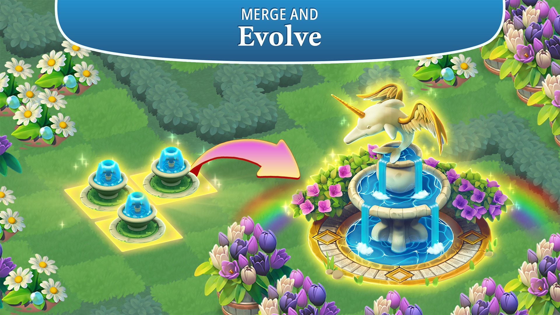 두뇌싸움을 벌이며 같은 종류 타일 세 개를 합치고 정원 밖 너머로 탐험하세요. 클리어하면 할수록 정원을 더욱 발전시키고 확장하며 수백 가지 아이템과 동물도 발견할 수 있습니다.